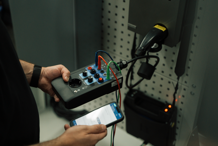 In Verbindung mit dem SAFETYTEST 1IT+ ermöglicht der EMA-Adapter die automatisierte Überprüfung der Schutzmaßnahmen an Ladesäulen bis 63 A, mit variablen Ladesteckern (Typ 2, optional Typ 1)